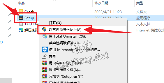 2.打开解压后的文件夹,鼠标右击【Setup】选择【以管理员身份运行】。