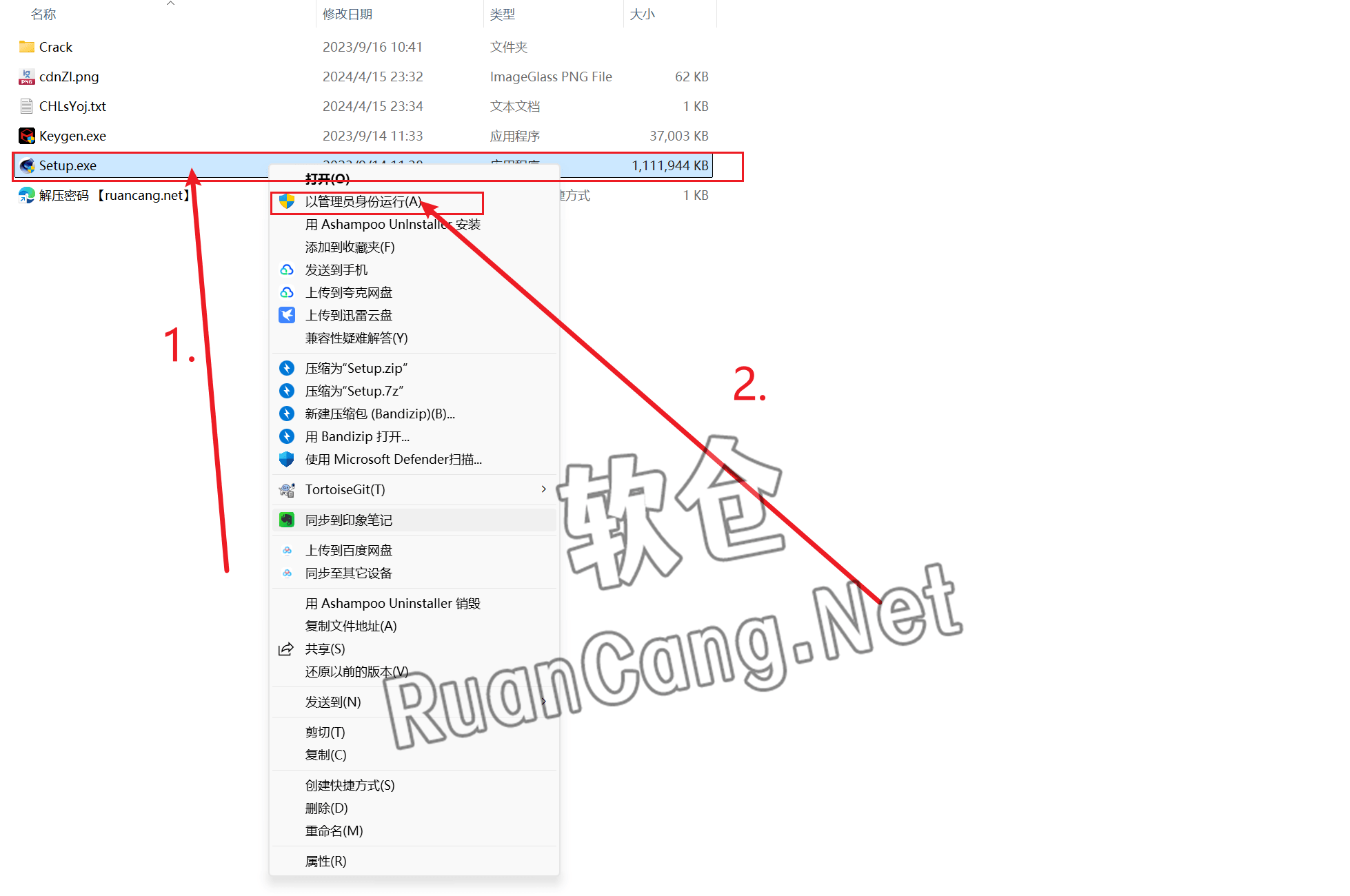 2.打开解压后的文件夹,鼠标右击【Setup】选择【以管理员身份运行】。